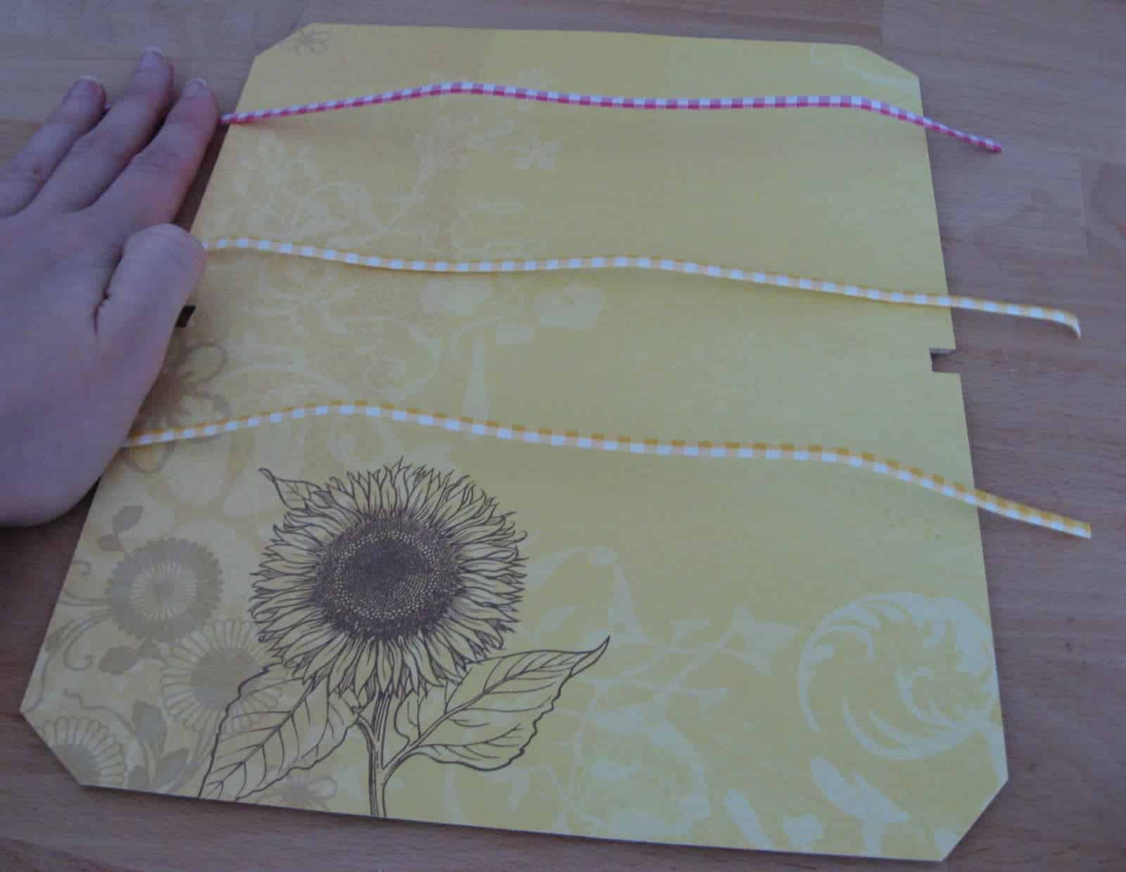 Dekobänder als Befestigung für die Ohrhänger aussuchen, auf Papier platzieren um Abstand zu bestimmen, danach auf der Rückseite mit Heißkleber festkleben und möglichst straff spannen, damit sie nicht durchhängen.