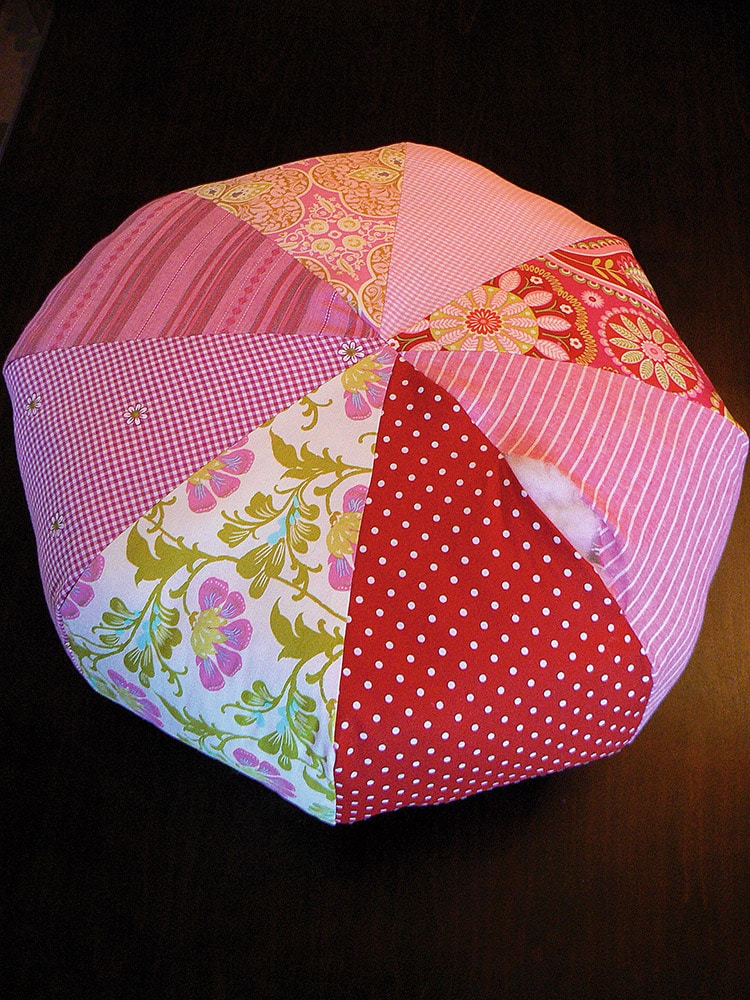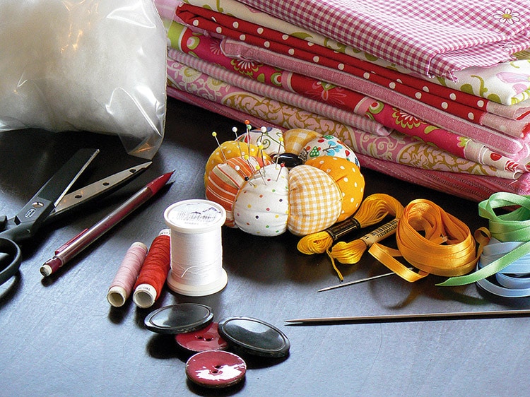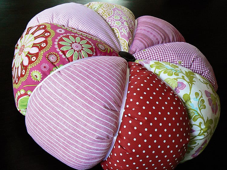 Macht es euch bequem: mit dem Pouf zum Draufsetzen, dem Sofakissen zum Ausruhen und dem kleinen Nadelkissen zum besseren Arbeiten.
