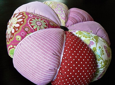 Größen: Pouf (XL), Sofakissen (M), Nadelkissen (XS).