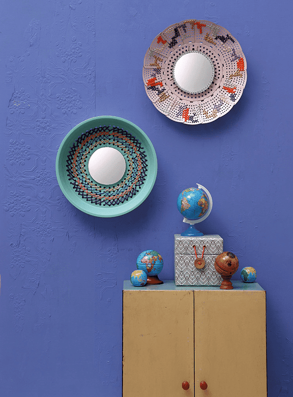 Doch ungeachtet seiner bewegten Geschichte gilt für den Lippenstift vor allem eins: Um seine volle Wirkung zu entfalten, muss er makellos aufgetragen sein. Da ist es praktisch, einen kleinen Spiegel an der Wand zu haben, in den man vor dem Ausgehen noch mal schnell einen Blick werfen kann. Und sollten Sie ungeschminkt das Haus verlassen, schauen Sie einfach darauf, um sich an der bunten Stickerei auf Ihrem alten Dämpfeinsatz zu erfreuen. Den haben Sie zum Kochen doch ohnehin nie benutzt.