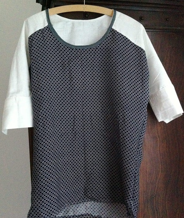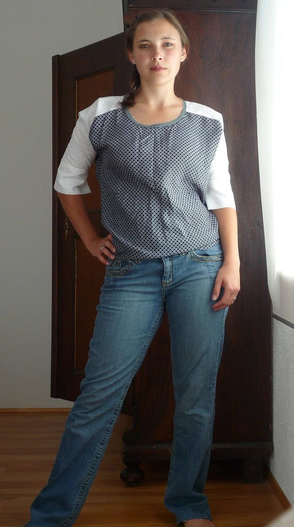 hier ist meine Interpretation des Easy Peasy Shirts. Ich habe dieses Projekt auch gleich zum upcycling Projekt erkoren und habe Stoffe meiner Großmutter verwendet. Was dem ganzen keinen Abbruch tut.
