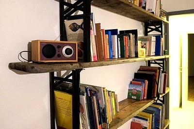 4 Bierbänke + Buntlack + Schraubenplatten + Schrauben = Ein cooles, großes, stabiles, günstiges Buchregal.