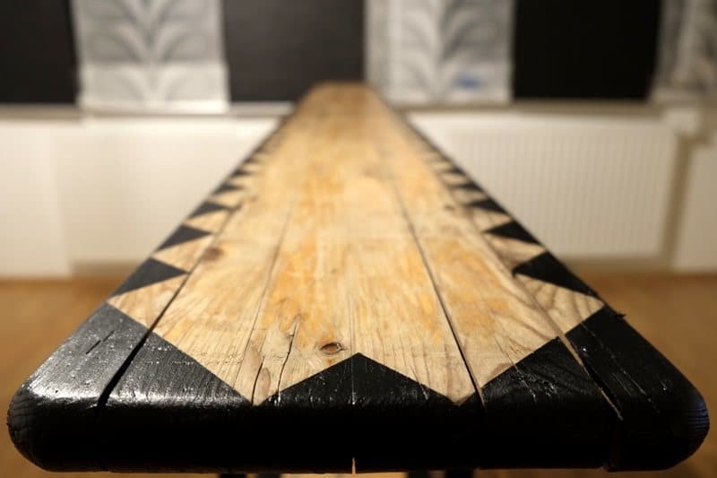 Die Bierbänke habe ich mit dünnen Schraubenplatten untereinander fixiert. Im Nachhinein habe ich dann gedacht, dass ich Löcher in die Füße hätte reinbohren können... Es wäre zwar schöner aber nicht so stabil, denke ich.