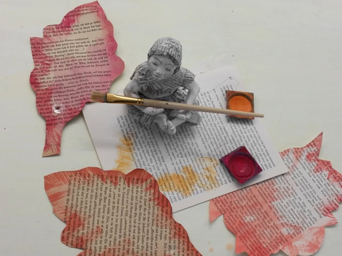 1Materialien für eine Herbstgirlande aus alten, zerliebten Buchseiten