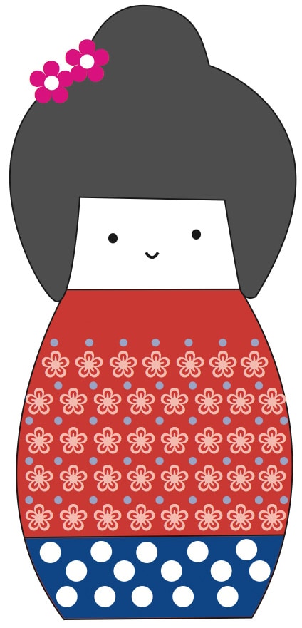 Kopiere das Schnittmuster und drucke das Schnittmuster 5x aus.Wenn du die Puppe größer oder kleiner haben möchtest, vergrößerst bzw. verkleinerst du den Ausdruck dementsprechend. (Originalgröße Schnittmuster = Rosa-Kokeshi)