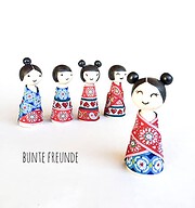 Kokeshis kommen aus Japan und wurden ursprünglich aus Holz gefertigt. Heute gibt es die kleinen Puppen auch zum Kuscheln, gemalt oder gestickt. Man verschenkt sie an Menschen, die man besonders gern hat!