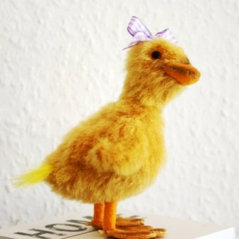 Dann habt ihr alles zusammen. Die kleine Ente ist ca. 13 cm hoch und fast ebenso lang. Die Beine sind etwas speziell, aber ich habe die Fertigung Schritt für Schritt erklärt, so dass es kein Problem sein dürfte. Für die kleine Ente kann man sehr gut Stoffreste verwenden, sie benötigt nicht so viel Material.