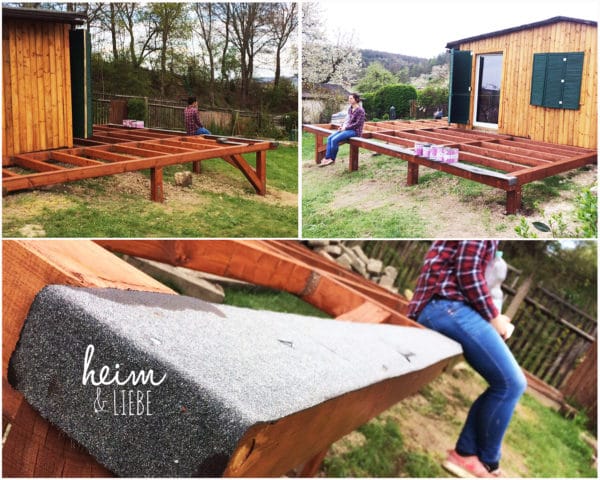 Nachdem unser Gartenhäuschen bereits eine neue Verkleidung, Fensterläden und eine Tür erhalten hat, wollen wir unbedingt in diesem Jahr eine Terrasse bauen. Da unser Garten ein Hanggrundstück ist, ist es uns auch besonders wichtig, eine schöne große Terrasse zu haben, die uns Platz für Tisch und Stühle bietet. Die Vorstellung auf der Terrasse den Grill anzuwerfen und mit Freunden zu verweilen oder an einem lauen Sommerabend mit einem guten Buch im Liegestuhl zu sitzen, macht mich jetzt schon ganz glücklich….Also soll es doch auch bitte ganz schnell gehen und am besten noch vor Beginn des Sommers sollte die Terrasse fertig sein. Nach einigen Überlegungen, youtubevideos, Internetanleitungen und Befragungen unserer bekannten Hobbyhandwerker waren wir verzeifelt…. lest auf meinem Blog wie die Terase un doch gestalt annimmt