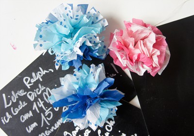 Die Einladungskarten sind Teil einer Serie aus DIY-Geburtstagsdekorations-Ideen, die mit ganz einfachen Mitteln hergestellt werden. Hauptmaterial ist Seidenpapier.