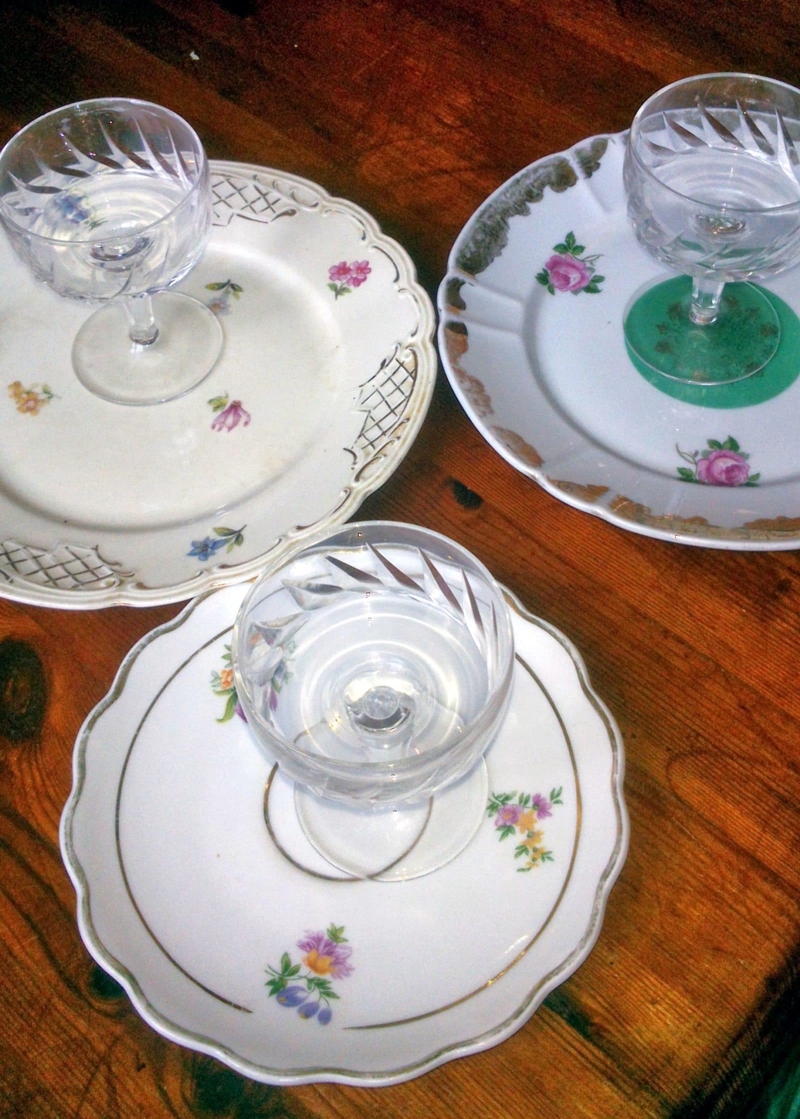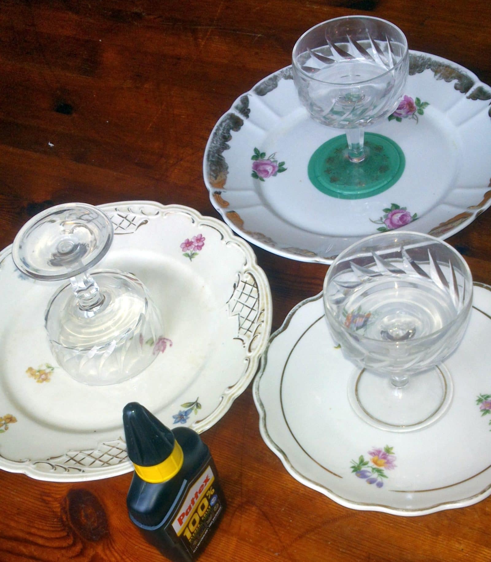 Diese Etagere ist aus Omas alten Gläsern und Teller zusammen geklebt.