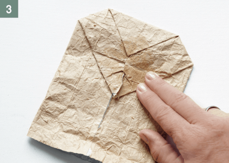 Dann das Papier ordentlich knautschen. Auch das geht am besten, wenn die Packung ein wenig in Wasser eingeweicht wurde.