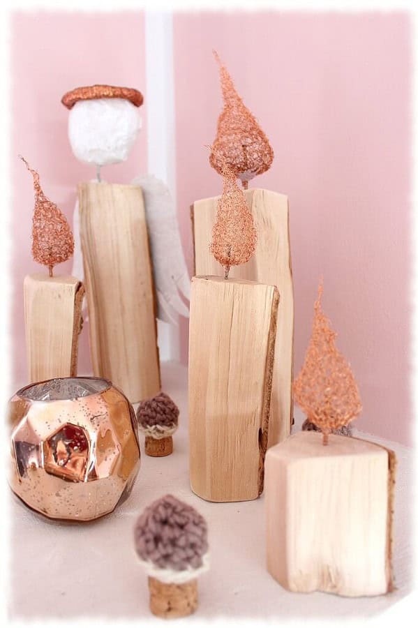 Der Rest ist ein Kinderspiel: Auf den Holzscheit muss man einen entsprechend großen Nagel einschlagen und das Drahtende vom magischen Ring um den Nagel wickeln. Dabei den gesamten Nagel von oben nach unten mit dem Kupferdraht einwickeln. Wenn das Ganze ein bisschen zu wacklig ist, mit ein bisschen Heißkleber festkleben.