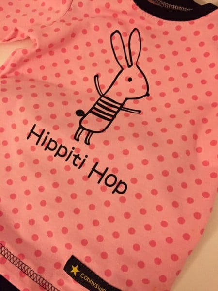 Auch für meine reizende Großnichte, die gerade mal 7 Monate alt geworden ist, hat die Osterhasentante was genäht. Auch dieses Schnittmuster samt Anleitung findet ihr bei pattydoo. Die Leggings, diesmal in 3/4 Länge ist ebenfalls von pattydoo – wie schon in meinem vorigen Beitrag (Fleißiges Osterhaserl) erwähnt und verlinkt.