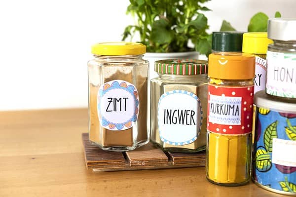 Unsere DIY Idee, die ihr mithilfe der Etiketten ganz einfach umsetzen könnt: Befüllt kleine Gläschen mit Gewürzen und beklebt sie mit selbstbeschrifteten Etiketten. Als Extra-Hingucker könnt ihr sie vorher auch noch mit einem Stück Geschenkpapier verzieren.