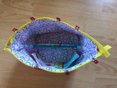 Häkeltasche „Hertha“ kann wahlweise mit oder ohne zusätzliche Außentaschen genäht werden, ebenso kann die innere Aufteilung nach Bedarf gestaltet werden. Es ist eine mittlere Unterteilung mit Reißverschluss zur Aufbewahrung von Häkelnadeln vorgesehen, die aber auch ohne RV genäht oder weggelassen werden kann.