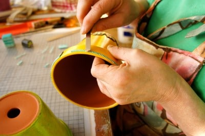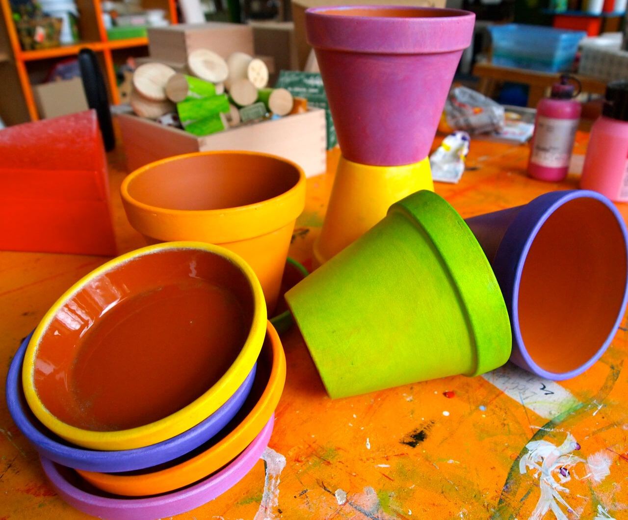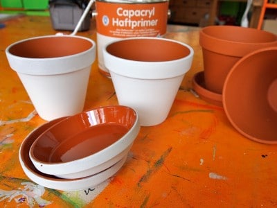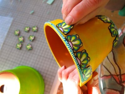 Frühlingsfrische Blumentöpfe mit Fimo-Borte