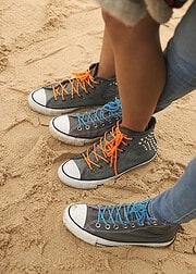 Mit Anchor Style kann man ganz easy tolle farbenfrohe Schnürsenkel selbermachen. Aus dem neuen Anchor Nylongarn einfach eine Kordel drehen, die Enden mit dem Feuerzeug versiegeln und einfädeln.
