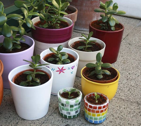 Für diese DIY braucht ihr nur eine ältere Geldbaumpflanze, die Ablegerspuren zeigt. Und ein paar Töpfe und etwas Erde.