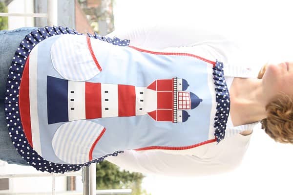 kurz vor „Einsendeschluß“ ist meine maritime Upcycling-Schürze fertig geworden….