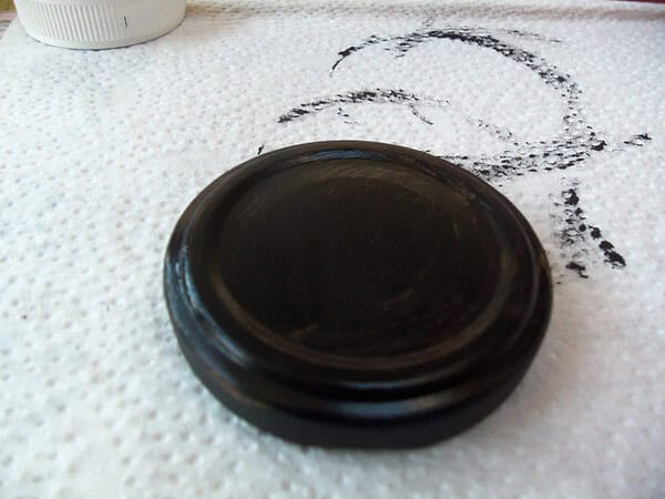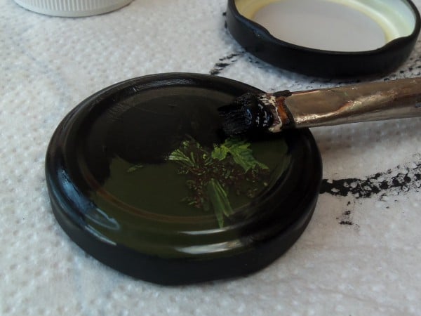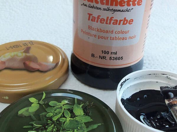 Damit zum Schluß alles schön ordentlich aussieht habe ich die Deckel mit Tafelfarbe bemalt. So kann man die Gläser auch super immer wieder neu beschriften.