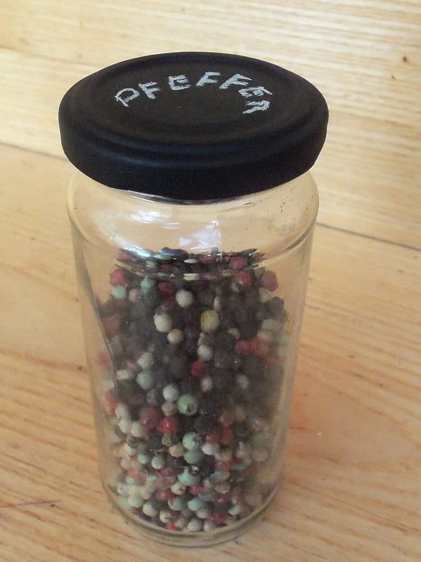 Wenn die Farbe getrocknet ist können die Gläser befüllt, beschriftet und eingeordnet werden.