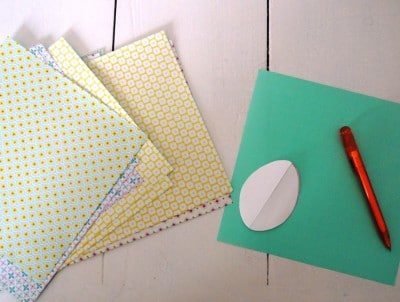 Mit Hilfe einer Schablone die Eiform auf buntes Papier übertragen und ausschneiden.