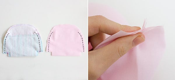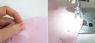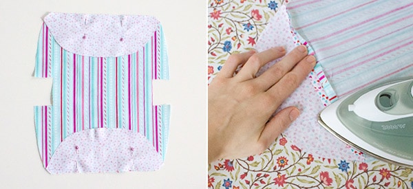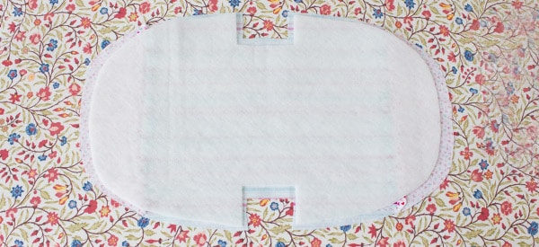 Steppe dann beide oberen Rundungen jeweils ausgehend von der Mitte mit 1cm Nahtzugabe ab.