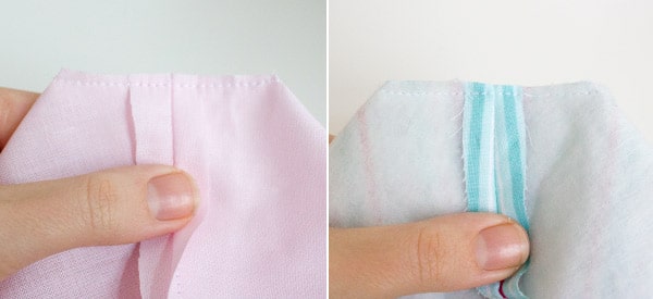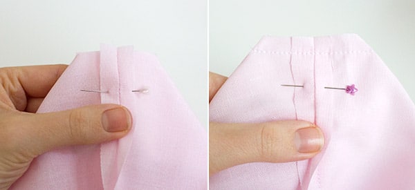 Klappe die Nahtzugaben auseinander und fixiere die Ecke mit einer Nadel.