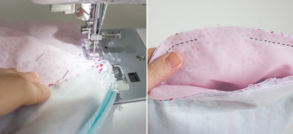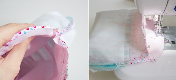 Nähe an den Seiten so weit wie du kannst zur Innenkante.