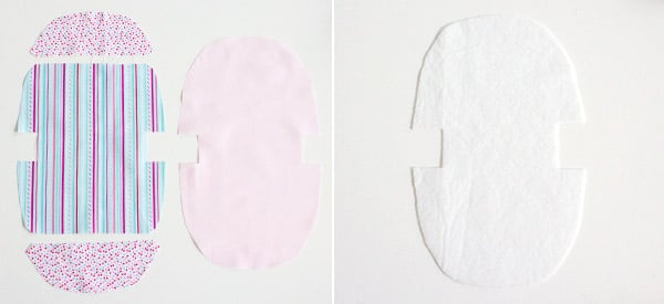 Zunächst schneidest du Stoff und Vlies anhand der Schablonen aus dem Schnittmuster zu. Achte darauf, dass das Schnittteile “Innenfutter” und “Unterteil” im Bruch zugeschnitten werden. Auch die Oberteile kannst du (musst du aber nicht) im Bruch zuschneiden.