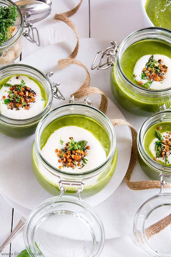 Grünes Spargelsüppchen mit Linsentopping von den [Foodistas]