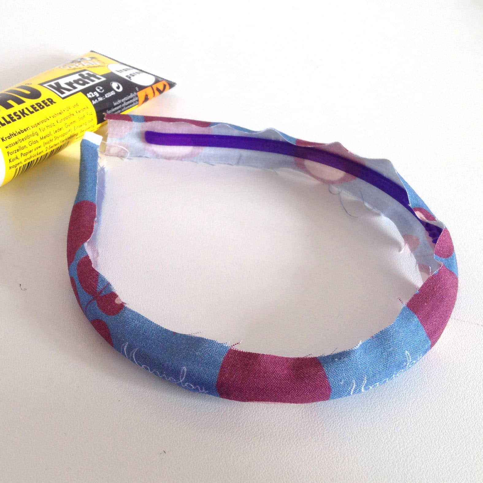 2Stoffstreifen auf den Haarreifen aufkleben