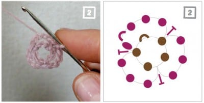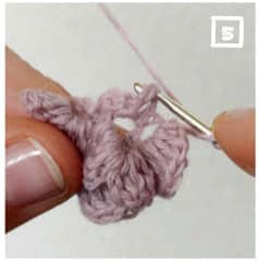 5 Luftmaschen mit Kettmasche zu einem Ring schließen.