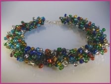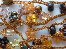Häkelketten bestehen aus einem langen Luftmaschenstrang, in den Perlen verschiedener Farben, Größen und Formen eingehäkelt werden.