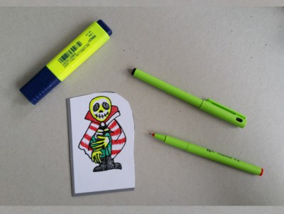 Oder Du verwendest die Motive als schauderhafte Tischkärtchen, indem Du sie auf ein gefaltetes Tonpapier klebst. Vielleicht soll sie mit einem Klebemagneten Deinen Kühlschrank verschrecken?
