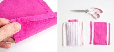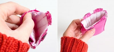 Kürze anschließend die Nahtzugaben an den langen Seiten bis auf 2-3mm zurück.