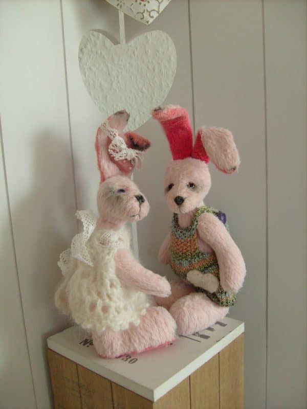 Hans und Hanna sind zwei liebenswerte Hasen und kommen zu Ostern genau richtig. Sie sind ziemlich schnell gemacht und man kann sie an zwei Wochenenden komplett fertig stellen. Von den Füßen bis zu den Ohrspitzen sind sie genau 18cm groß. Auf meiner Seite findet ihr wie immer die Anleitung als E-Book zum runter laden.