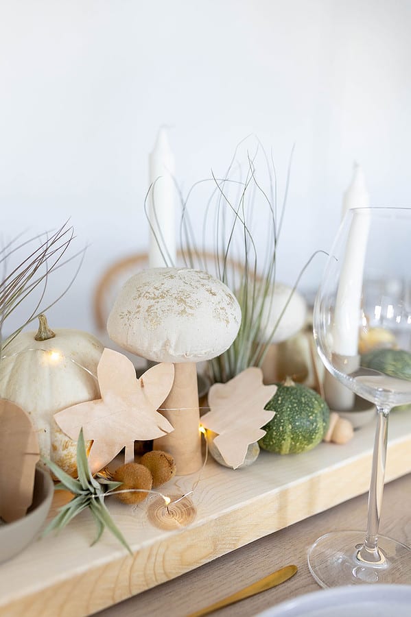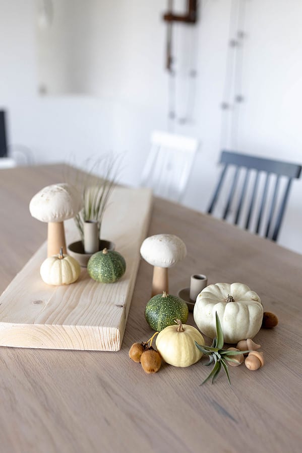 Der Herbst ist da und mit ihm kommt die Sehnsucht nach gemütlichen Momenten und einer schönen Tischdeko am Esstisch, dem Treffpunkt für Freunde und Familie. Wenn die Blätter draußen langsam weniger werden, ist es Zeit für ein bisschen mehr Deko und Natur im Haus. In diesem Artikel zeige ich euch eine ganz einfache und schnelle herbstliche Tischdeko mit Baby Boo Kürbissen, flackernden Kerzen, schlichten Pilzen und den dezenten Grüntönen der Tillandsien, passend zum Scandi-Look. Ihr werdet staunen, wie einfach es ist diese stimmungsvolle Atmosphäre zu schaffen und euren Essplatz herbstlich zu dekorieren. Mit ein paar einfachen DIY-Ideen zum Basteln wird die Herbst-Deko noch persönlicher.