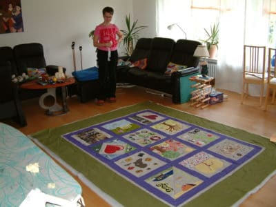 Ja, mach das doch. Zeig uns Deinen Quilt. Es ist vor allen Dingen schön, was für einen Spaß die Kinder dabei haben!!