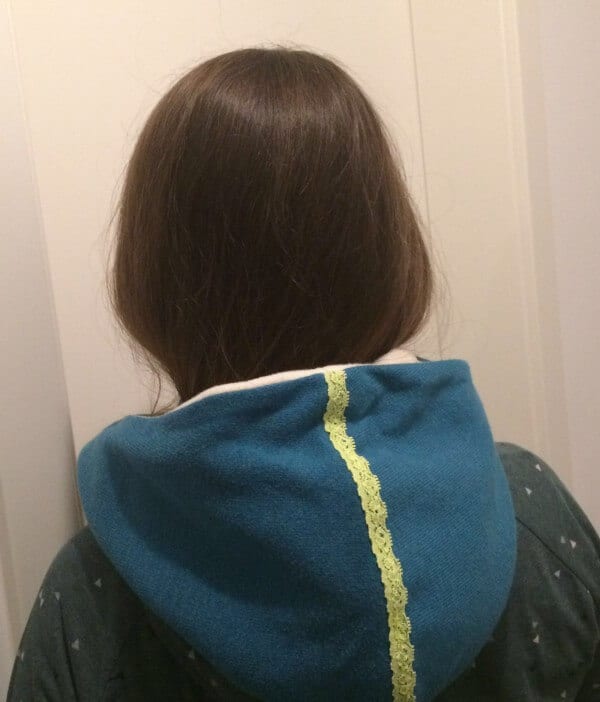 Dieser schöne Hoodie ist ein Upcycling-Projekt.