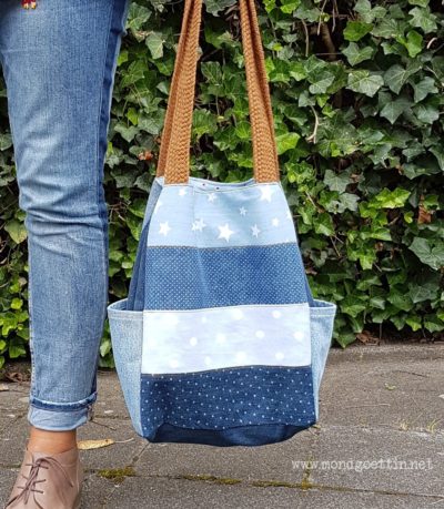 Upcycling Nähidee Jeanstasche aus alten Jeans und altem Kleiderstoff genäht, preiswert und schön ! grossmutter in Geschenke, Geschenkideen, Nähen, Upcyclen merken