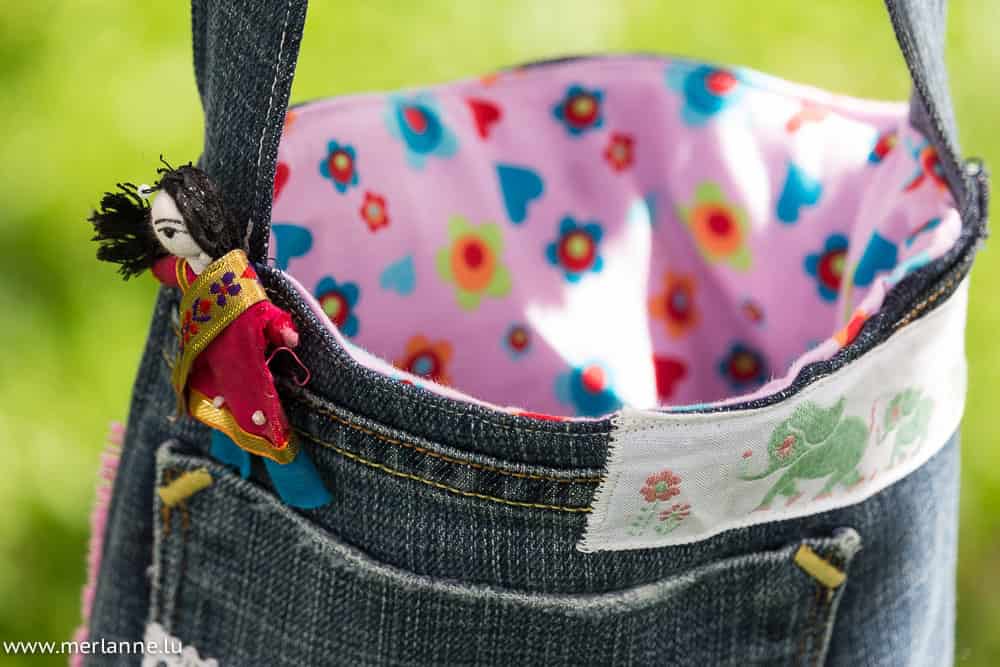 Aus alten Jeans lässt sich so vieles machen, es ist einfach toll. So z.B. auch diese hübsche bunte Tasche für kleine Mädels.