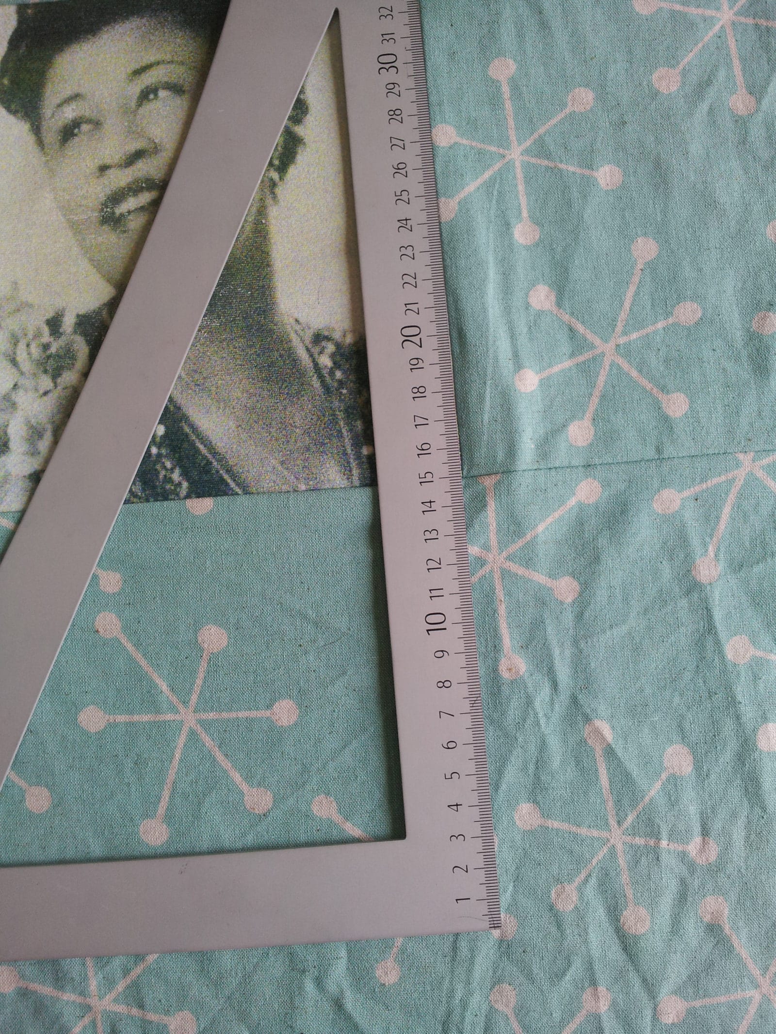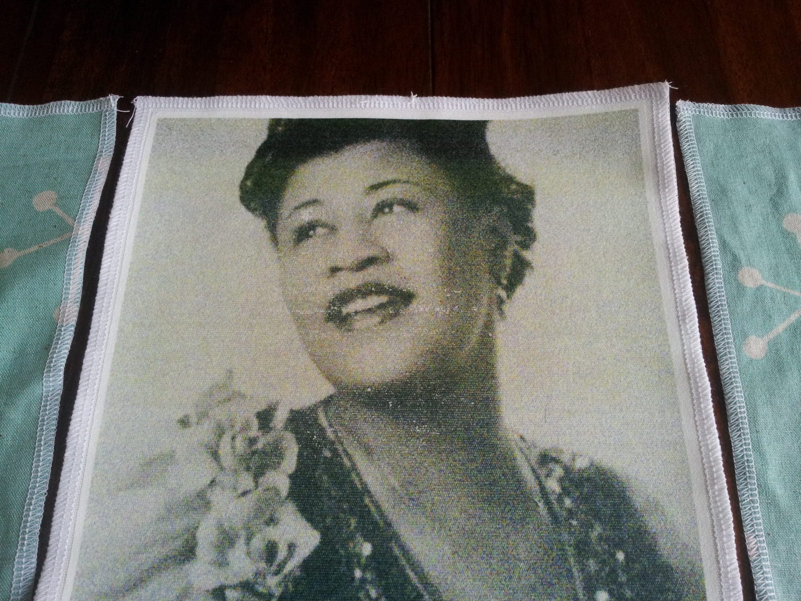 Ich habe hierfür eine Schwarzweißfotografie der jungen Ella Fitzgerald gewählt, dank Transferfolie kannst Du Deiner Fantasie aber sowas von freien Lauf lassen. Mir fiele da noch mehr ein: Textzeilen aus Lieblingssongs, Comicfiguren, etc.. pp. :)