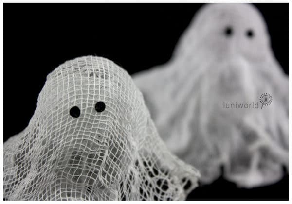 Kleine Geister zu Halloween aus Wäschestärke und Käsetuch