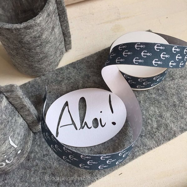 Habt ihr Lust auf Upcycling… auf DIY… dann schnappt euch Filzreste… kramt das liebste Ankerwebband raus [oder geht es schnell noch bei Tch*bo kaufen]… sucht euch kleine Väschen aus dem Kajüten-Proviant raus… ich habe noch ungeliebte Gewürzgläschen von Ik*a gefunden… und ab an den Plotter mit euch… ich zeige euch wie ihr alte ungeliebte kleine Gläschen und Vasen trendige zu `Ahoi!`Väschen aufpimpt…