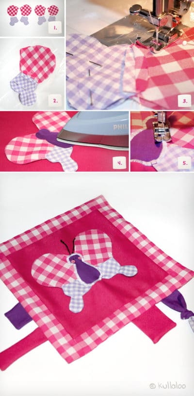 Schnuffeltuch mit Knister-Schmetterling heiDIY in Geschenkideen, Handgemachtes für Kinder, Nähen merken