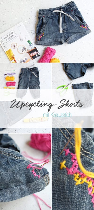 Hose mit bunten Kreuzstichen aufhübschen Gingered Things in Frühling, Handgemachtes für Kinder, Nähen, Sticken, Upcyclen mit Anleitung merken