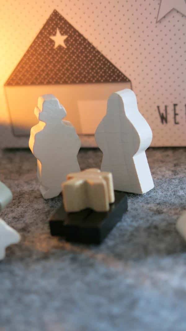 Für meine Idee eine Minikrippe zu gestalten, die in eine große Streichholzschachtel passt, waren diese Figuren genau passend und hatten die richtige Größe. Ich finde die Figuren so schön und niedlich – besonders den Esel!