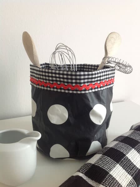 Es bestand aus einer Wendekochschürze (ist sie auf einer Seite schmutzig wird sie schwupps umgedreht), einem Topflappen und einem Küchenutensilo aus abwaschbarem Wachstuch. Ob sie damit jetzt noch besser kocht? kaum mehr möglich ;-)