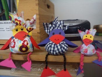 Diese niedlichen Osterküken aus Stoff oder aus einer Papierserviette gebastelt eignen sich hervorragend, um ein paar kleine Ostereier in ihrem Bauch zu verstecken. Ganz niedlich lassen sie dann am Ostermorgen ihre Beinchen vom Tellerrand baumeln und werden so Teil der Ostertischdekoration. Sehr schön wirken sie aber auch auf der Fensterbank oder auf dem Rand eines Blumentopfes sitzend. Sie sind ganz schnell gemacht und selbst kleinere Kinder können sie mit ein wenig Hilfe herstellen.